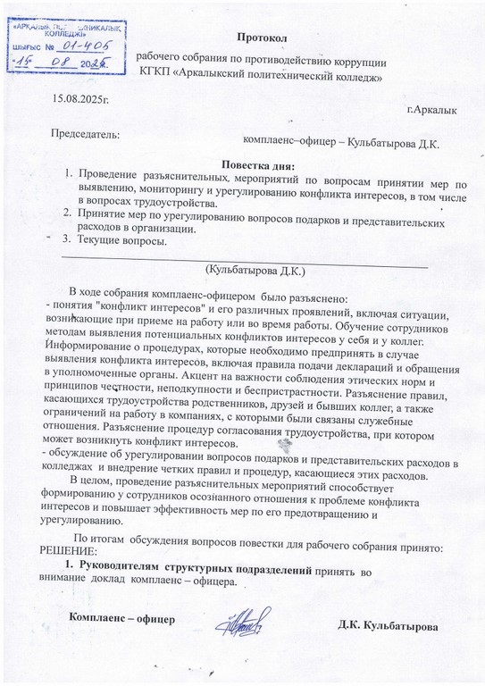 Протокол рабочего собрания по противодействию коррупции от 15.08.2025 г.