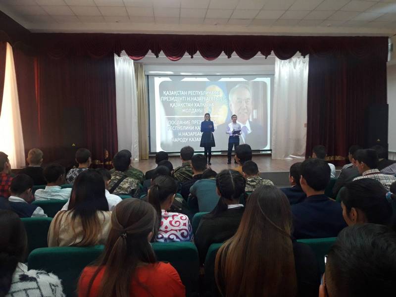 Колледж ішінде 1-2 курс студенттерінің арасында П-01 тобының студенттерінің ұйымдастыруымен, 2018 жылдың 5 қазанында мемлекет басшысы Н.Ә.Назарбаевтың қазақстан халқына кезекті Жолдауы талқыланды.